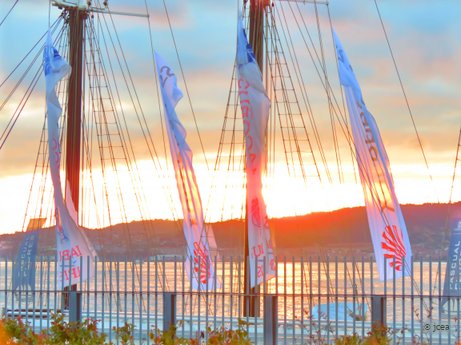 La flota Iacobus Maris 2022, peregrinación jacobea marítima desde Génova, llega a Vigo. Los barcos se podían visitar en cierto horario, que yo evité para ahorrarme aglomeraciones (seguimos en pandemia y parece que ya no le importa a nadie) y colas.
