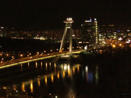 Castillo de Bratislava, orgullo de los lugareños y edificio que domina la ciudad, de día y de noche.
