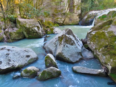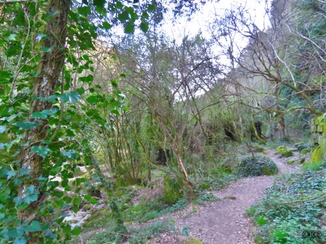 La ruta directa era cortita y sencilla pero como teníamos tiempo decidimos bajar hasta el río. Desde allí intentamos la ruta secundaria. Primero nos equivocamos y fuimos por donde no era (pero resultó ser una ruta muy atractiva). Luego encontramos el camino de verdad, que subía y subía... Una ruta hermosa pero complicada y algo arriesgada (estaba en muy mal estado, como si estuviese abandonada hace tiempo). Y subía y seguía subiendo... hasta una puerta de acero cerrada a cal y canto. Resulta que sí, es una ruta abandonada :-). Nos tocó volver a bajar con extremo cuidado y desandar todo el camino hasta la ruta que tendríamos que haber cogido desde el principio... a costa de perdernos muchas fotos y rincones interesantes.