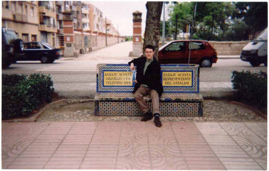 Otra fotografía de Linares. Obsérvese el número de teléfono en el azulejo del banco... ¡¡¡Sólo tiene tres cifras!!!. ¿De qué año será eso?. Paseo de Linarejos.