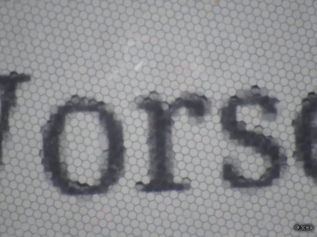 Parece evidente que ese panal hexagonal no se corresponde con los "pixels" de la pantalla de tinta electrónica. Tal vez sea simplemente una rejilla de protección o para darle rigidez mecánica.