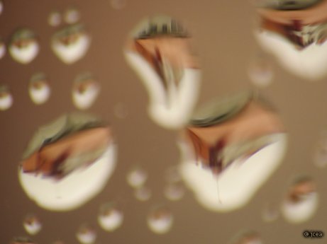Aquí estoy enfocando el borde de las gotas de agua, no el interior de las gotas. El efecto es curioso e interesante.