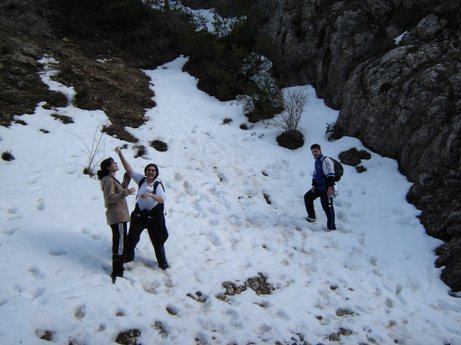 De regreso al punto de origen, ya que se hacía tarde, y el hielo y la nieve nos habían aconsejado dejarlo para otro día. Caídas y resbalones varios aconsejaban prudencia.