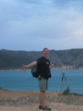 Haciendo el payaso en el embalse de Buendía, ya casi de noche y empezando a llover.
