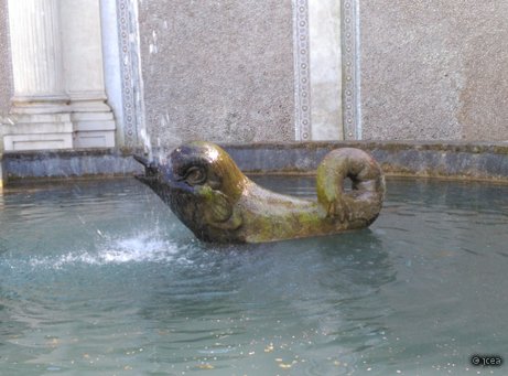 Gran fuente con forma de concha. Lamentablemente, sin agua.