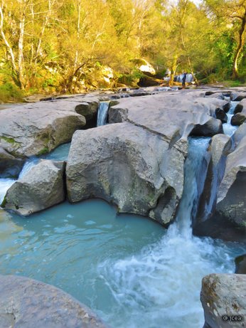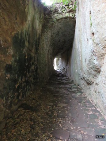La ruta directa era cortita y sencilla pero como teníamos tiempo decidimos bajar hasta el río. Desde allí intentamos la ruta secundaria. Primero nos equivocamos y fuimos por donde no era (pero resultó ser una ruta muy atractiva). Luego encontramos el camino de verdad, que subía y subía... Una ruta hermosa pero complicada y algo arriesgada (estaba en muy mal estado, como si estuviese abandonada hace tiempo). Y subía y seguía subiendo... hasta una puerta de acero cerrada a cal y canto. Resulta que sí, es una ruta abandonada :-). Nos tocó volver a bajar con extremo cuidado y desandar todo el camino hasta la ruta que tendríamos que haber cogido desde el principio... a costa de perdernos muchas fotos y rincones interesantes.