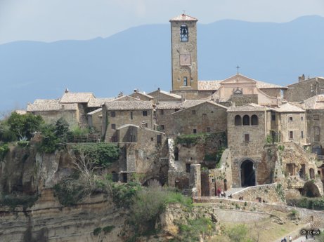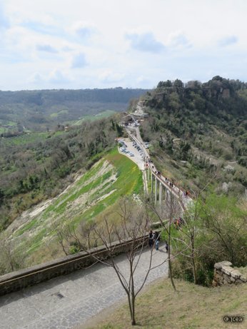 Civita di Bagnoregio es una pequeña ciudad medieval en lo alto de una peña. Se llega a ella a través de una pasarela peatonal. Bastante espectacular.