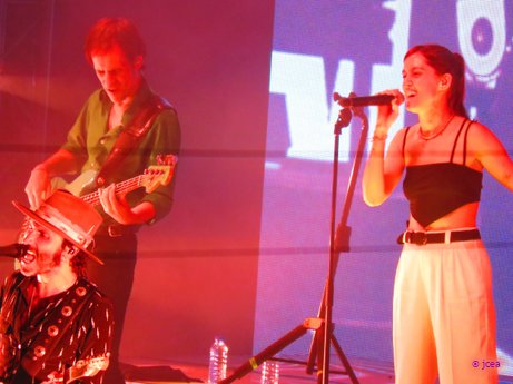 La cantante y bailarina de detrás fue bastante llamativa, pero había poca luz, yo estaba lejos y ella se movía demasiado como para poder acertar con la cámara.