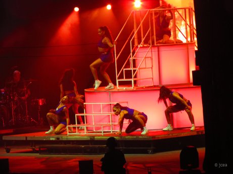 Lo que me resultó más interesante del concierto fue la actuación de las bailarinas y la coreografía. Con la poca luz de un concierto y la distancia a la que me encontraba, costó conseguir alguna fotografía que no estuviese movida. En fin, es lo que hay.