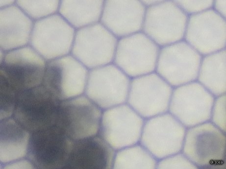 Parece evidente que ese panal hexagonal no se corresponde con los "pixels" de la pantalla de tinta electrónica. Tal vez sea simplemente una rejilla de protección o para darle rigidez mecánica.