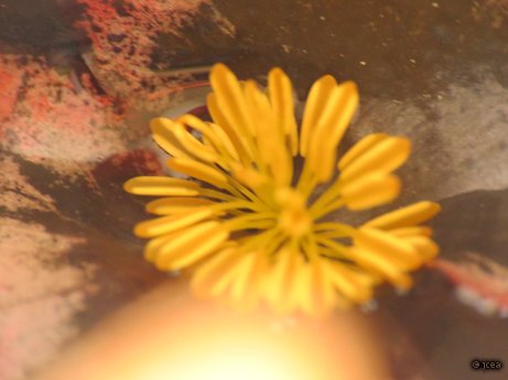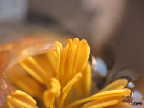 Se trata de una flor caída en agua. Los pétalos están ya transparentes por la descomposición y lo que queda -y muy bien- son los estambres.