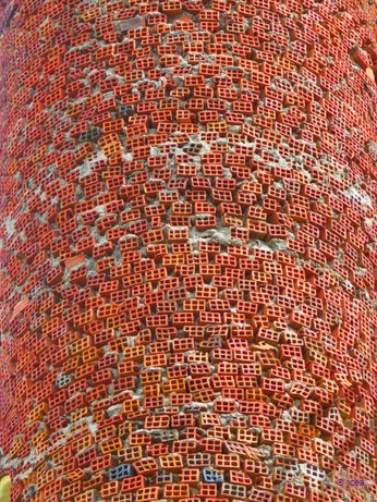 Detalle de los "pegotes" que decoran las paredes de la cripta.