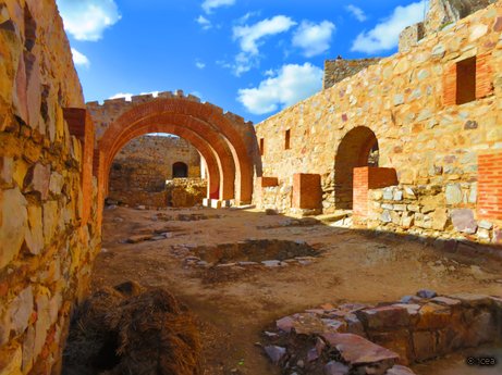 El Castillo de Calatrava la Nueva se construyó tras la reconquista, por lo que no sufrió ningún asedio ni batalla. Nos ha llegado en perfectas condiciones.