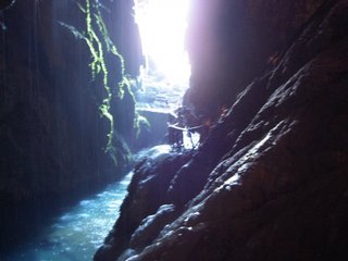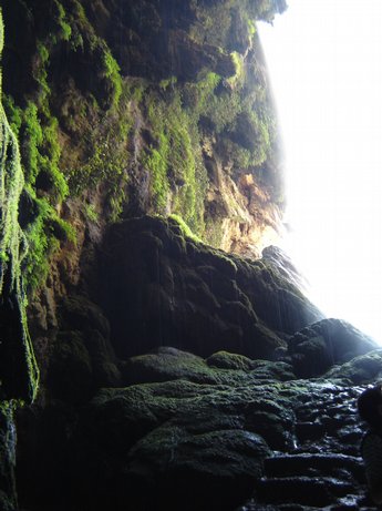 Fotografía sobreexpuesta a posta, para poder apreciar algún detalle de color en la parte interna de la cueva.