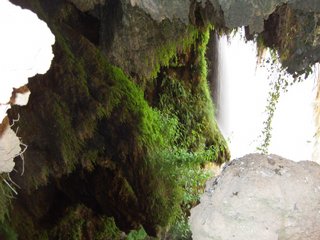 Dentro de la cueva, la "lluvia" de goterones de agua saturada de sales disueltas es continuo, por lo que es recomendable llevar chuvasquero o ropa oscura. Si se usan zapatillas deportivas, como llevaba yo, habrá que lavarlas posteriormente, para diluir la costra caliza.