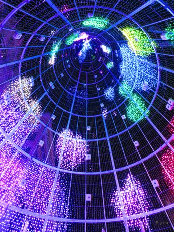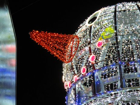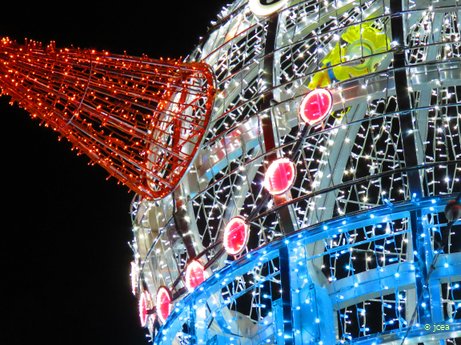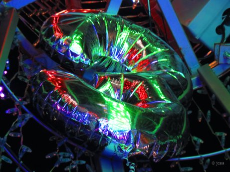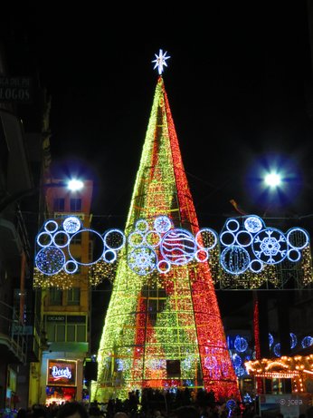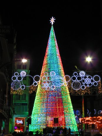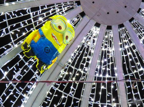 El globo es metalizado y, además de poder provocar un cortocircuito con tantas luces, refleja los colores del cono navideño.