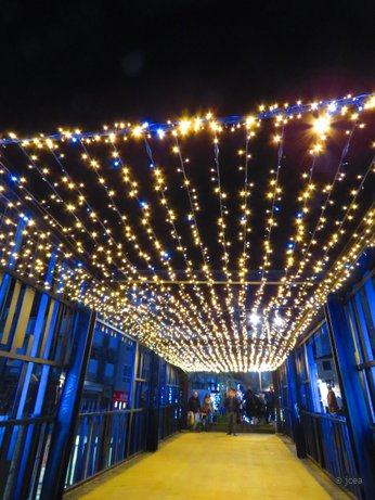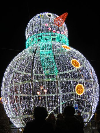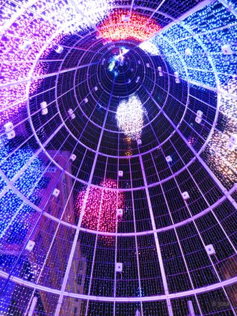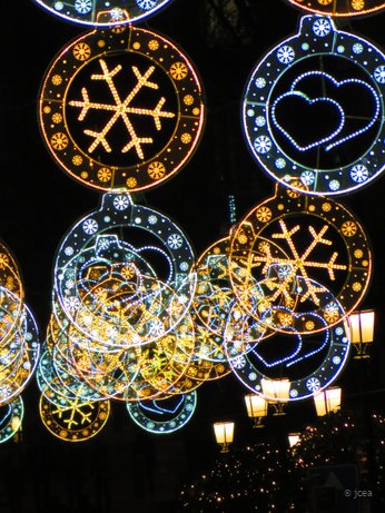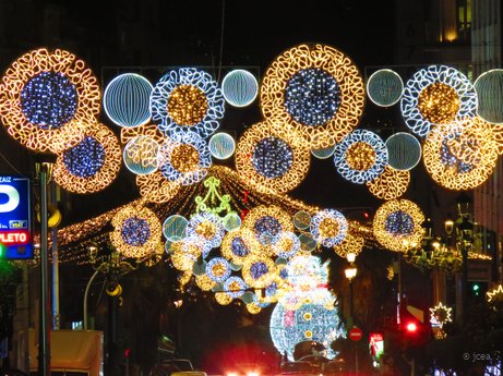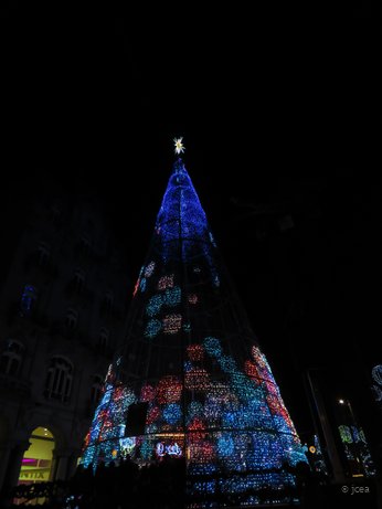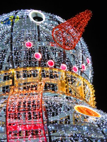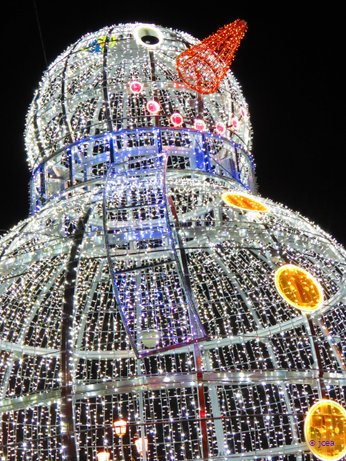 El globo es metalizado y, además de poder provocar un cortocircuito con tantas luces, refleja los colores del cono navideño.