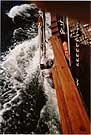 A toda vela hacia las islas Cíes, al fondo. Obsérvese que mi bañador es más largo que el pantalón };-)