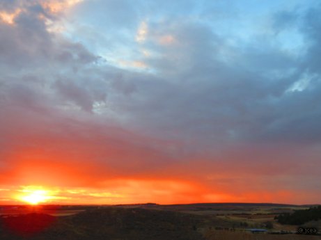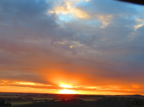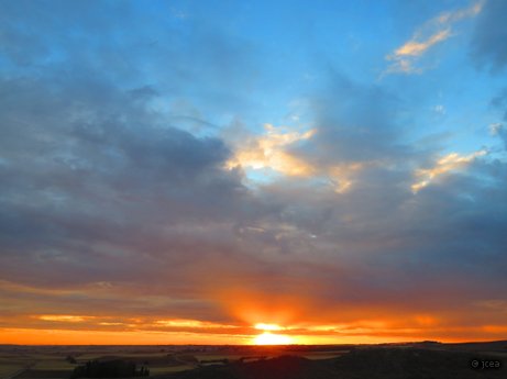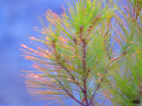 Foto mala intentando fotografiar el brillo de las hojas de pino con los últimos rayos de sol. No me di cuenta de que me había quedado movida.