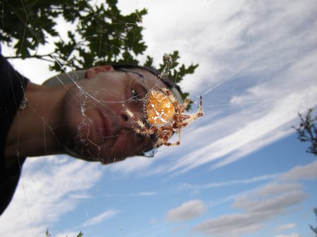 Araña "centollo", desde abajo y con flash. Ver la versión en grande da repelús. Agradece que tú no puedas :).