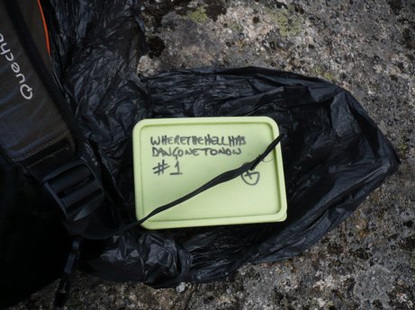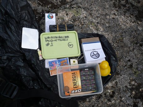 Tres horas buscando en el puto muro, y el caché estaba, al final, debajo de las tejas, a 10 metros.
