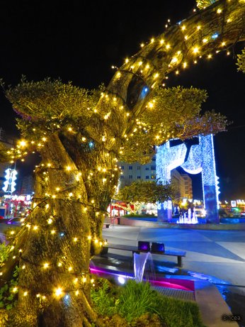 Sin gente estorbando y con tiempo, voy dominando lo de fotografiar árboles iluminados.