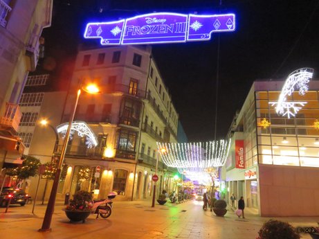 Hoy la iluminación de la calle Progreso, la calle patrocinada por Disney por el estreno de Frozen 2, funcionaba.